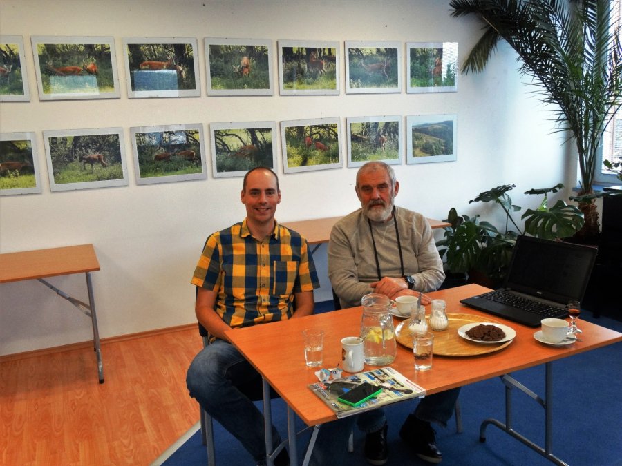 Byl jsem se s Míšou podívat ve Vrbně pod Pradědem na výstavku manželů Beranových pod názvem Příběhy z hor. Zajímavou výstavou nás provedl Jakub Rybár. Přátelské posezení u kafíčka nám Kuba zpříjemnil zajímavým povídáním o životě a myslivosti v zdejším kraji.