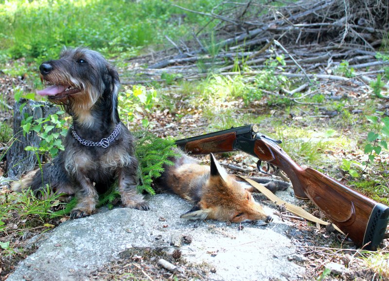 Lišku jsem střílel večer v 21:45 v lesní části naší honitby. Střílel jsem do hustého podrostu a když jsem se šel podívat na nástřel, lišku jsem nenašel. Bylo už šero tak jsem se rozhodl že vemu poprvé mojí Betty aby mi pomohla. Druhý den ráno jsme se vrátili na místo a Bettynka mi pomohla najít mojí první letošní lišku. Na místě dostala velkou pochvalu, lištičku pocuchala a doma kousek buřta za odměnu :-)Lovil jsem kulovnicí CZ550,