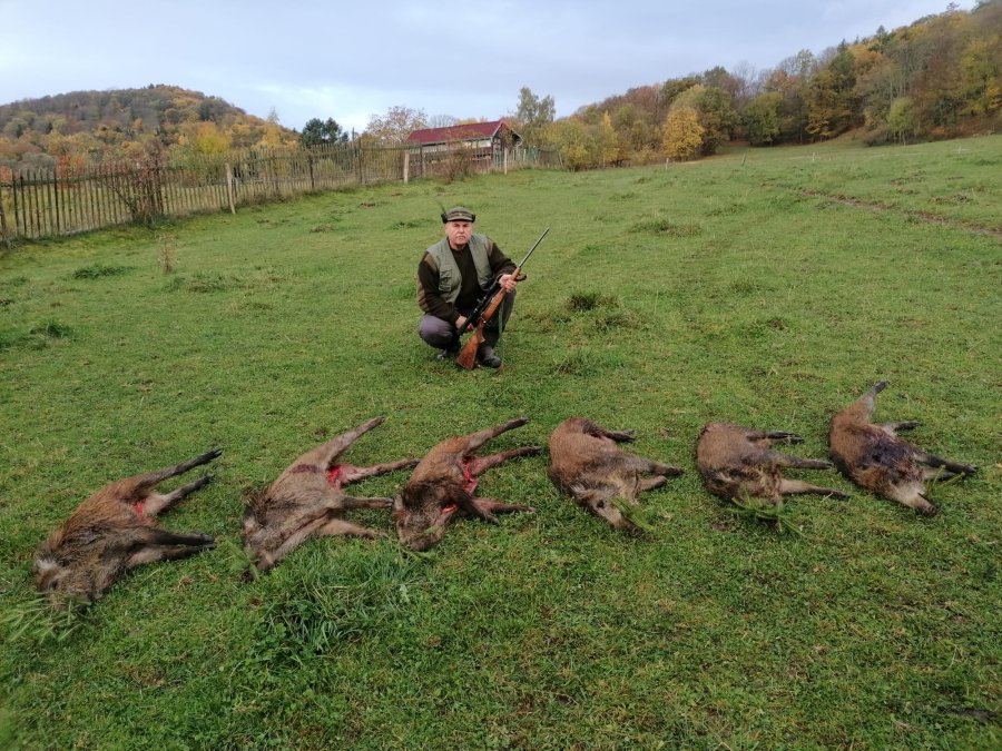 Pastviny totálně otočené, denně více a více. Na krmení přestali chodit-. Cpou se žaludy a pak jdou na pastviny rýt žížalí. Takže je rozhodnuto. V 19:00 zasedám do kazatelny a v jednu hodinu po půlnoci vytáhne z lesa ba 100 m asi dvacet prasat. Zaměřím se na selata. Pět ran a pět selat leží různě po pastvině. Vzpomněl jsem si, že mám v batohu ještě jednu patronu. No vložím ji do zbraně a za pět minut z lesa vyběhnout dvě selata a hledají svoje kamarády. No neváhám a je ulovené šesté sele. Přátelé v zelené. LOVU ZDAR!