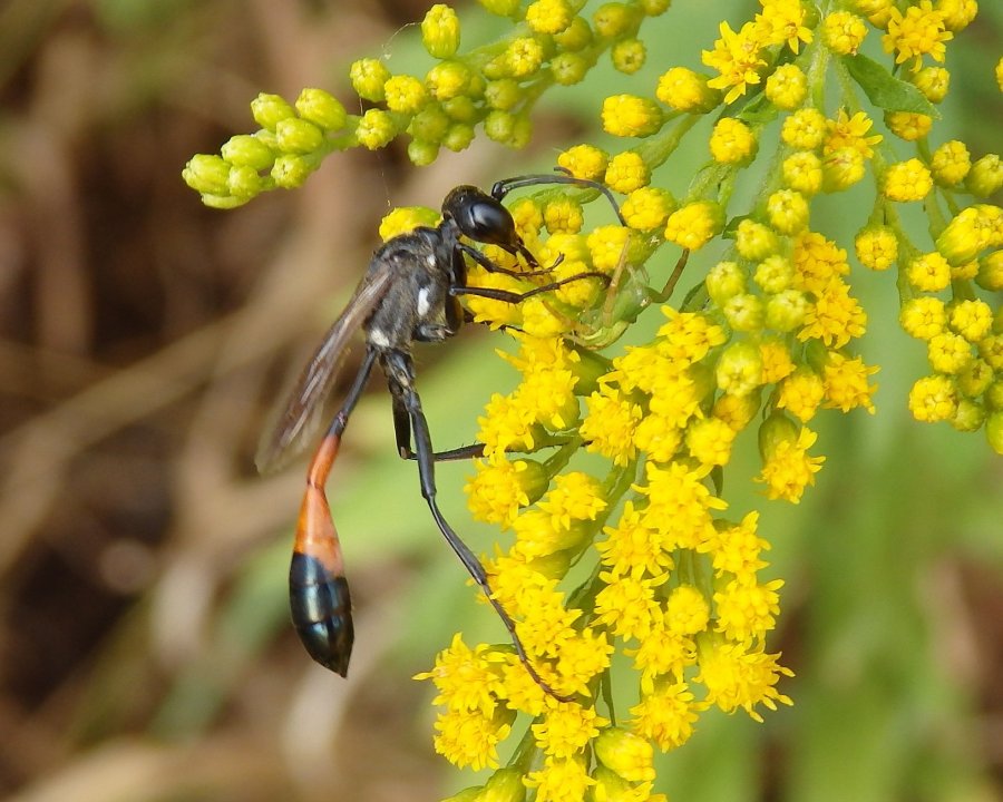 Kutilka písečnáAmmophila sabulosa - Kutilka písečná měří na délku skoro 3 cm. Má černo-oranžové útlé tělo. Živí se nektarem z květů. Podobně jako většina blanokřídlých má žihadlo, u nějž jsou jen malé zpětné háčky, proto může bodnout i vícekrát za sebou. Žije samotářsky, ne ve velkých koloniích jako vosy nebo včely.