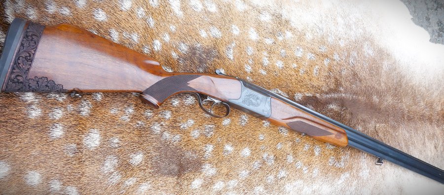 Prodloužení pažby - spoj maskován řezbou - poškození pažby na spodní straně u poutka - taktéž maskováno řezbou. Nová povrchová úprava a rybiny .