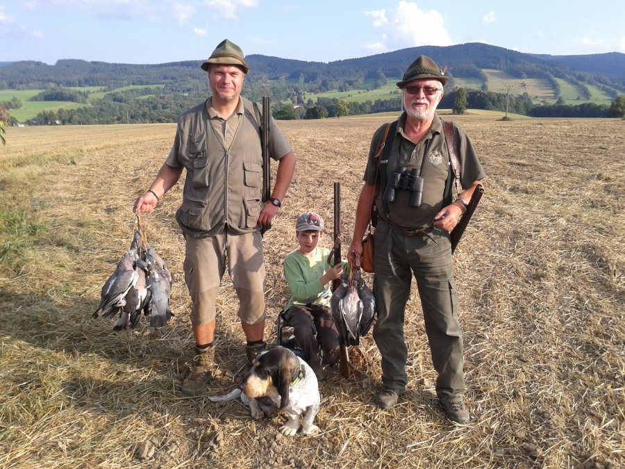 Ze synovcem a tatou u bráchy na pozvání po lovu holubů v Písečné.