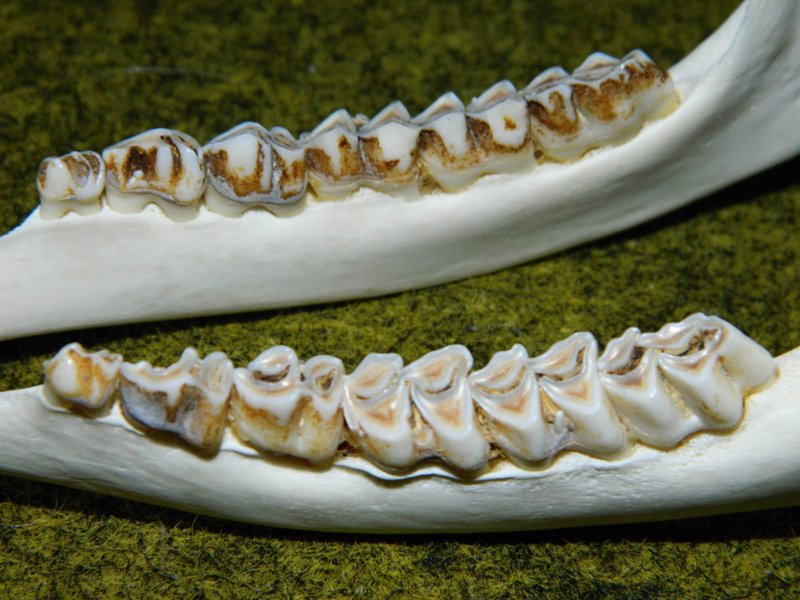 Detail spodní čelisti levého-slabšího srnce. I on na chovatelské přehlídce obdržel ,,titul roček". No asi se chvátalo :)) Fotku srnce jsem měl v úlovcích 23.9. 2011, ,,dodávková" váha byla 8kg a zimy asi opravdu přežíval jen díky nedalekému krmelci.