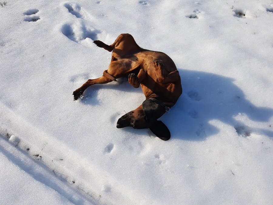 Dneska bylo krásně. Teplota a sníh jako na konci března. Jerrynka si oteplení užívala.