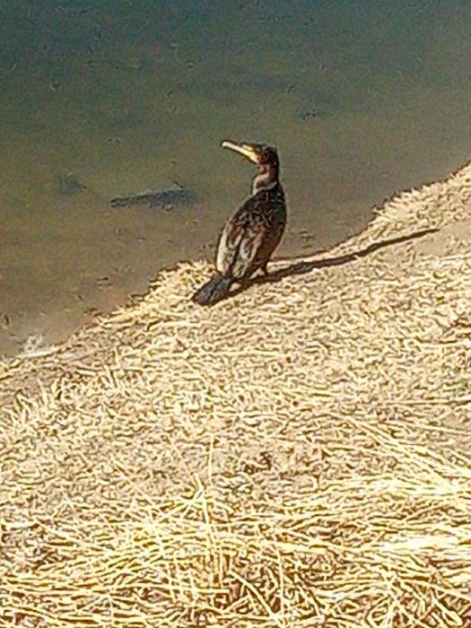 Kormorán při odpočinku. Sežral rybu a vyhlíží kam dál.