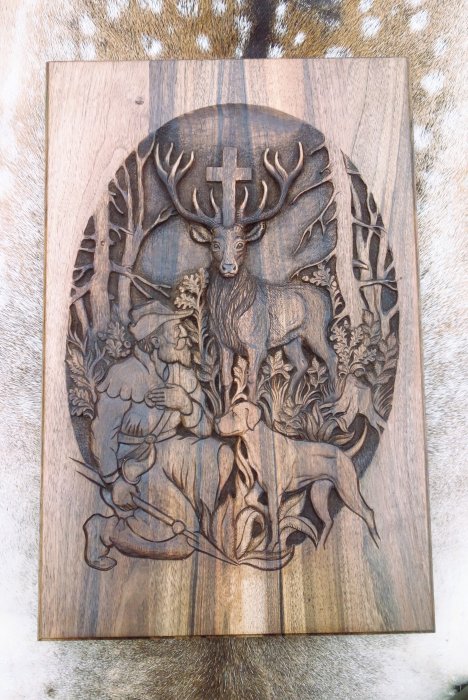 Svatý Hubert - reliéf z ořechového dřeva 60x40cm
