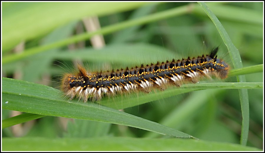 (Euthrix potatoria) - dorostlá housenka měří cca 8 cm. Jedná se o larvu nočního motýla, jenž má rozpětí předních křídel 45–65 mm. Během roku vytváří jednu generaci, jejíž dospělci létají od června do srpna, výjimečně až do září. Ve dne motýli odpočívají v travnatých porostech, v noci létají (často nalétávají na umělé zdroje světla). Housenky se z nakladených vajíček líhnou ještě během léta a do příchodu prvních chladných podzimních dní stihnou prodělat přibližně polovinu svého vývoje. Zimu přečkávají pasivně v rozličných úkrytech, na jaře vylézají a dokončují žír. Živí se širokou paletou lipnicovitých, sítinovitých a šáchorovitých bylin, jmenovitě např. srhou, třtinou, bikou či rákosem. Dorostlé housenky se během června kuklí v bělavém zámotku na zemi nebo na stéblech trav. Stádium kukly trvá přibližně tři týdny.