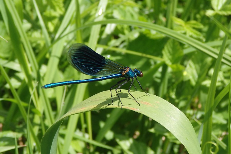 Calopteryx splendens) je vážka z podřádu motýlic (Zygoptera).Má modrozelené, kovově lesklé štíhlé tělo. U samečka je nápadná modrozelená nebo modrá velká skvrna na nazelenalých průhledných křídlech. Hlava je široká a oči jsou umístěny na boku hlavy daleko od sebe.