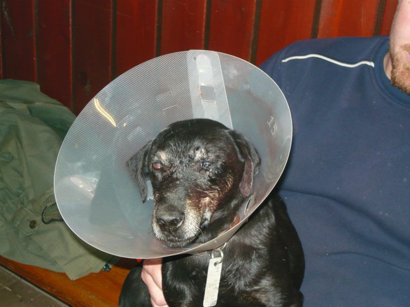 Kamarádův 8.letý jagoš Akim,neoblomný pracant a tak trochu magor.Kdyby byl v leči jeden jediný divočák,tak on ho najde a vyžene i přes to , že na jeho těle se těžko najde nezašitý čtvereční centimetr kůže.Tentokrát mu prase utrhlo půl obličeje.Tudíž děkujeme našemu dvornímu krejčímu MvDr. Radku Palánovi za kvalitní zaštupování rány z boje.Jestli Akim dostane rozum , nebo jeho pifka na černou ještě naroste....uvidíme