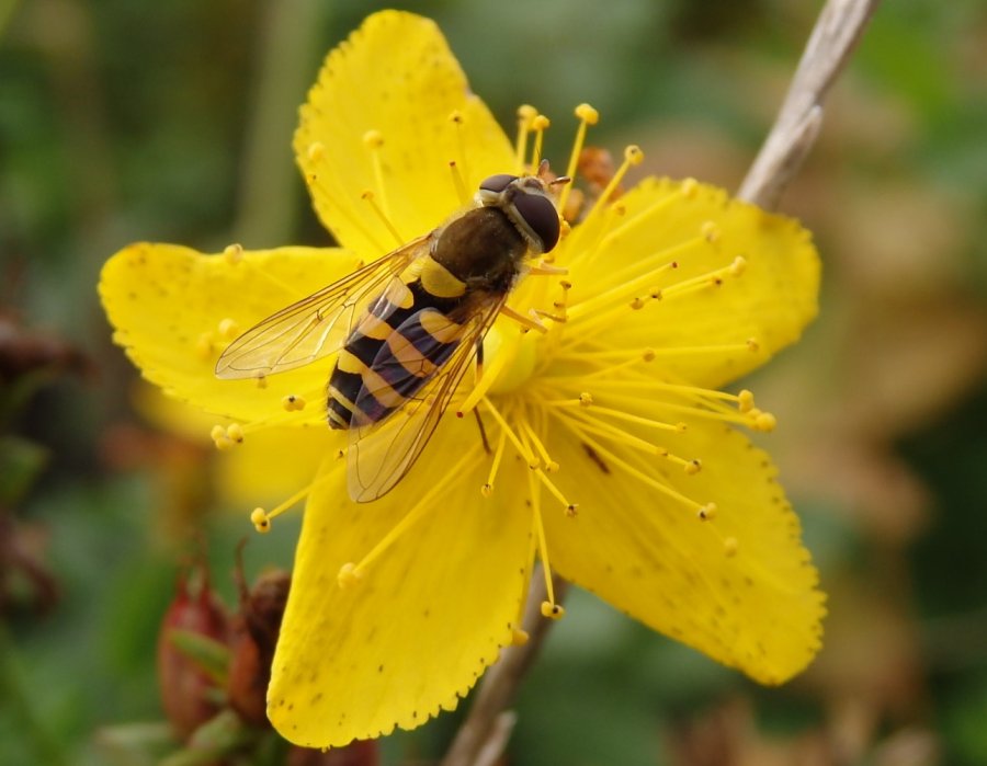 Slovensky: pestrica ríbezľová - Syrphus ribesiiJe hojně rozšířený dvoukřídlý hmyz z čeledi pestřenkovití. Jde o hojnou obyvatelku luk, mýtin, zahrad a parků v Evropě, Asii a Severní Americe. Dorůstá velikosti 9 – 11 mm. Ve volné přírodě lze pestřenku rybízovou zahlédnout od dubna do listopadu. Při letu se často díky velice rychlému mávání křídel doslova zastavuje na místě. Imaga se živí nektarem a pylem, šedobělavé larvy jsou však masožravé a hrají nepřehlédnutelnou roli při biologickém hubení mšic.