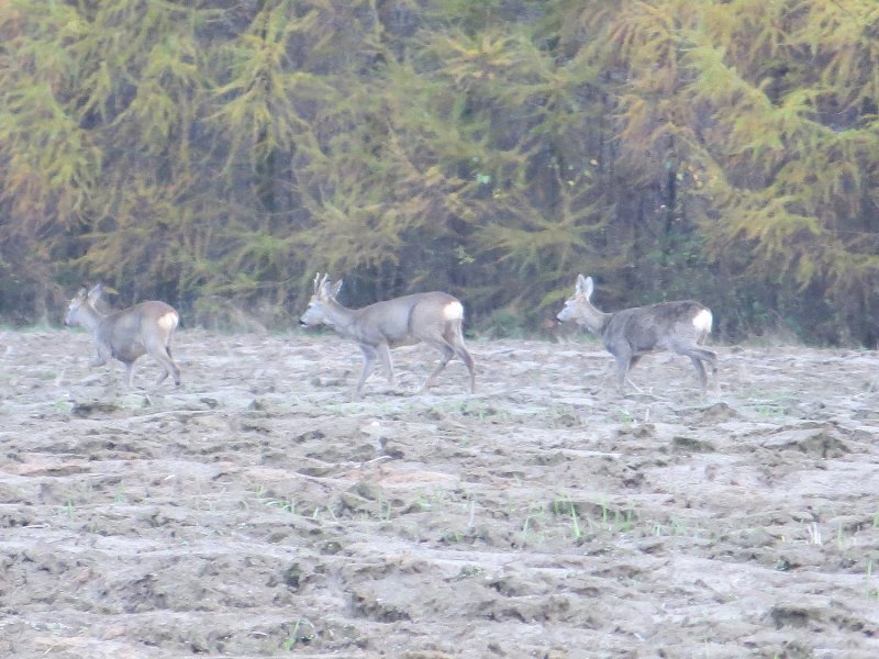 V řadě za sebou,tři srnčí kousky jdou.Dobrý.