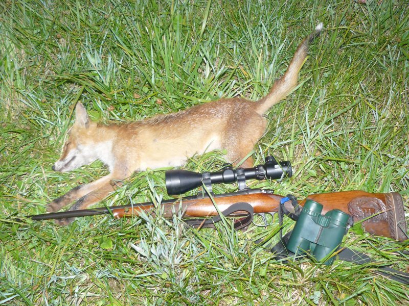 Po několika čekaných u kukuřice se na odrustající louce objevilo lišče. Snažil jsem se ulovit srnce, který vytrvale odolával.243 win - střelivo Hirtenberger Nosler Partition 6,5g