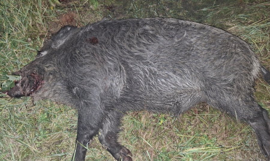 Na stejném místě kde jsem ulovil 2 lišky,vzdálenost 130m,norma vulkán 11.7gr v ráži 308win. Zásah těsně za lopatku,zůstal v ohni. Vyvržený 110kg