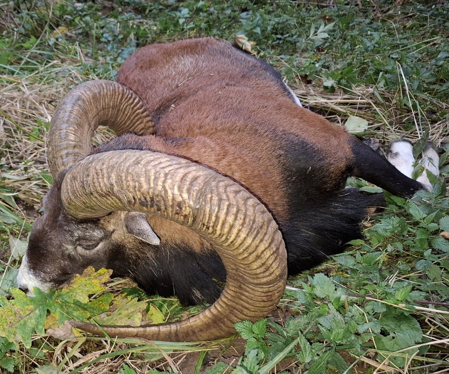 Uloven 11.10.2025 na ranní šoulačce ze střelecké hole na vzdálenost 110m. Po dobrém zásahu komory,těsně za plec odskočil 35m a zhasl.Loveno ráží 30-06,střela SPCE 11.7gr.