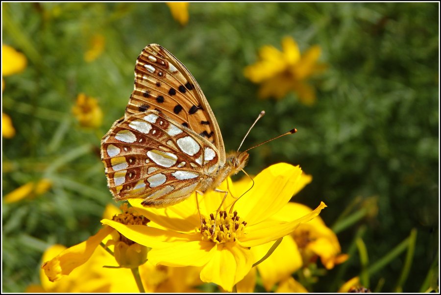 Issoria lathonia (Linnaeus, 1758)- Biotopová vazba: migrant, prakticky všudypřítomný v otevřené krajině, nejčastěji v agrocenózách, na zaplevelených plochách, lemech polních cest, okrajích remízků atd.; též na kamenitých stráních, pastvinách, v lomech, intravilánech obcí a měst, podél dálnic, v průmyslových zónách atd.Živná rostlina housenek: převážně violka rolní (Viola arvensis).