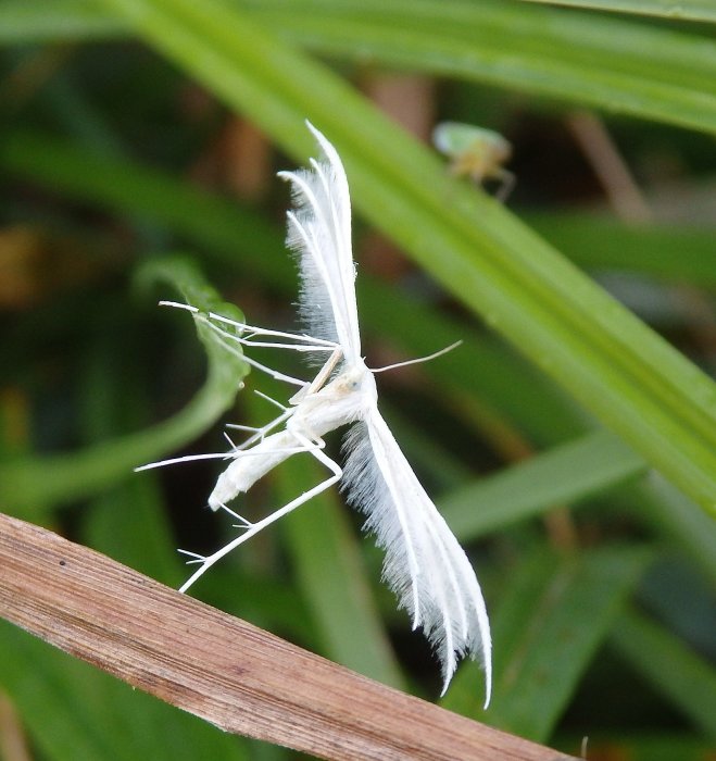 Pterophorus pentadactyla - je motýl s "křídly anděla", řečeno s nadsázkou. Je sněhově bílý, široce rozšířený motýl z čeledi pernatuškovitých. Křídla pernatušek jsou typická svým tvarem. Přední křídla pernatušky trnkové jsou rozčleněna do dvou, zadní potom do tří cípů (pentadactylus = pětiprstý). Cípy jsou zpeřené – z hlavních paprsků vybíhají jemné řasy, které tvoří vlastní plochu křídel. Morfologicky připomíná stavba křídel ptačí pero, odtud jméno – pernatuška. Křídla zůstávají i při odpočinku rozložená, tvar těla pernatušky tak vytváří podobu písmene „T“. Nohy pernatušky jsou velmi dlouhé a tenké, na holeních lze pozorovat dva páry nápadných ostruh. Pokud je motýl v klidu, sedí obvykle na dvou párech nohou, přičemž je zadní pár přiložen k tělu. S tímto drobným motýlkem se můžeme setkat kdekoliv v otevřené krajině. Často ji potkáme také v zahradách, na pasekách, křovinatých stráních, okrajích lesů atd. Vyskytuje se od května do srpna či září. Dospělci jsou aktivní především za soumraku, pernatušku tedy řadíme mezi noční motýly. Housenky pernatušky jsou zelenavé s černými tečkami a řídkými bílými chloupky. Živí se především trnkou (odtud jméno), svlačcem, ale také jetelem, růžemi a dalšími rostlinami. Housenky se kuklí na spodní straně listů.