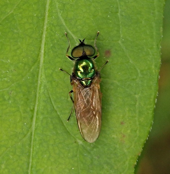Chloromyia formosa - čeleď bráněnkovití. V ČR hojný druh od nížin do pahorkatin, roztroušeně po celém území.