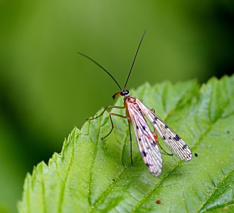 srpice skvrnitá (Panorpa germanica) – samci mají nápadný výběžek na třetím zadečkovém článku.