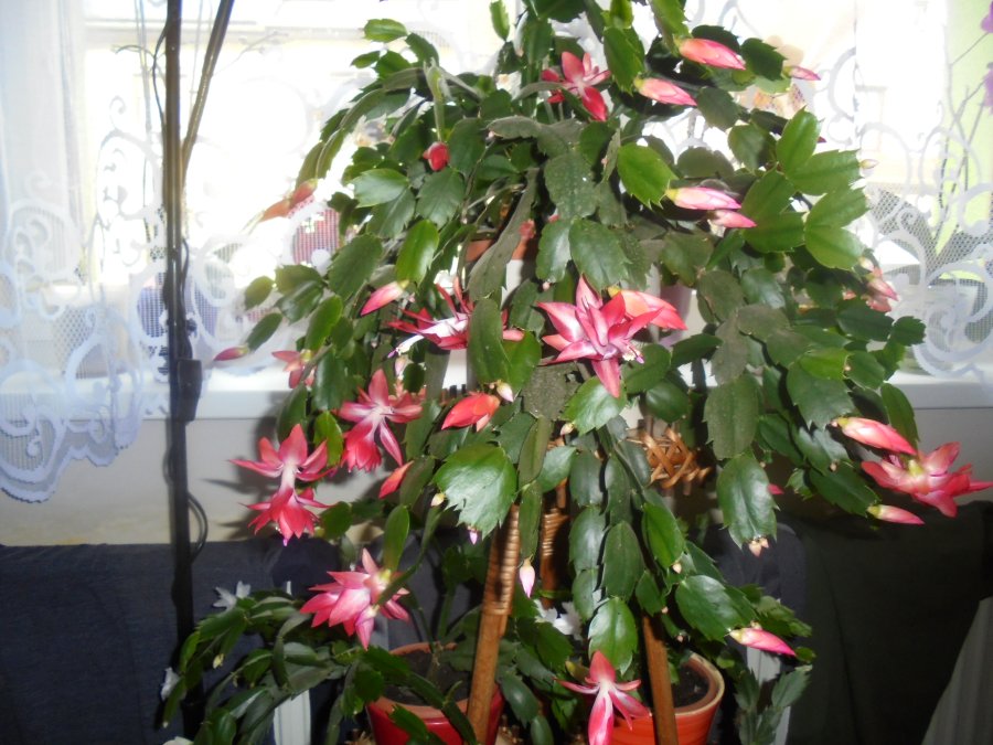 červeně kvetoucí vánoční kaktus se již otevřel v celé parádě