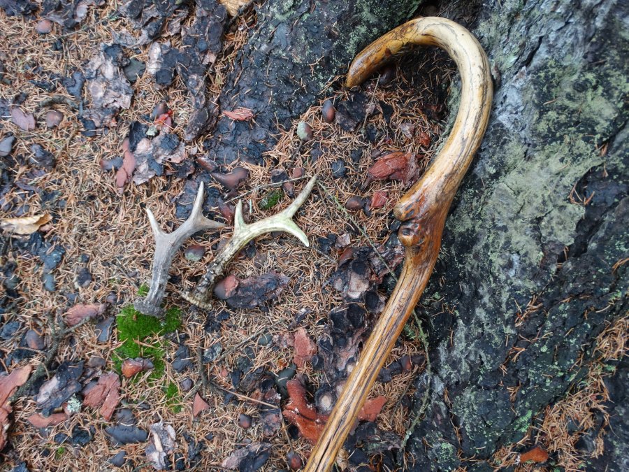Neděle je od toho ,aby se nedělalo.Tak holt jsem si vyjel vyčistit krmelec,ale jen jsem uklidil doslova hnůj pod jeslemi,jak psala Paní Padalíková hrabat a hrabat,tak jsem vyhrabal ten menší parůžek.A začalo pršet,ale to mě neodradilo od toho projít se tam kam mě to táhlo.Ještě,že jsem si vzal do ruksaku holínky,v mlazině byl ještě sníh.Už od krmelce jsem viděl parůžkovou "Fata morgánu".Ale po sto metrech mlazinou,(ještě se sněhem)už to nebyla Fata morgána,ale skutečnost....parůžek.Ale hnán vidinou,že ještě něco najdu,přesto,že jsem byl úplně promáčený,jsem hledal dál.Pak jsem si uvědomil,že nemusím být takový hladovec a vzdal jsem to .Poděkoval jsem Sv.Hubertovi a spokojen jsem odejel domů.