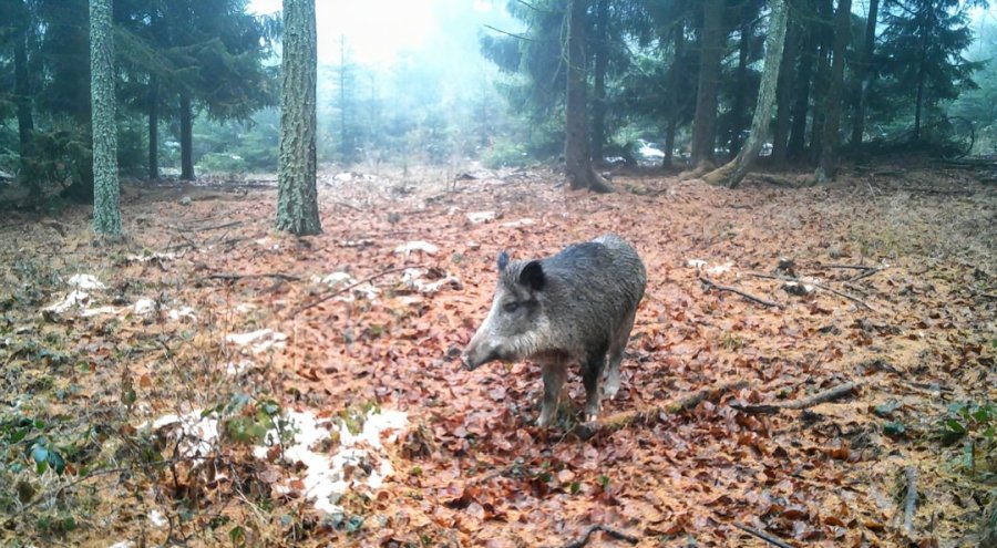 Divočák (bachyně) před fotopastí.