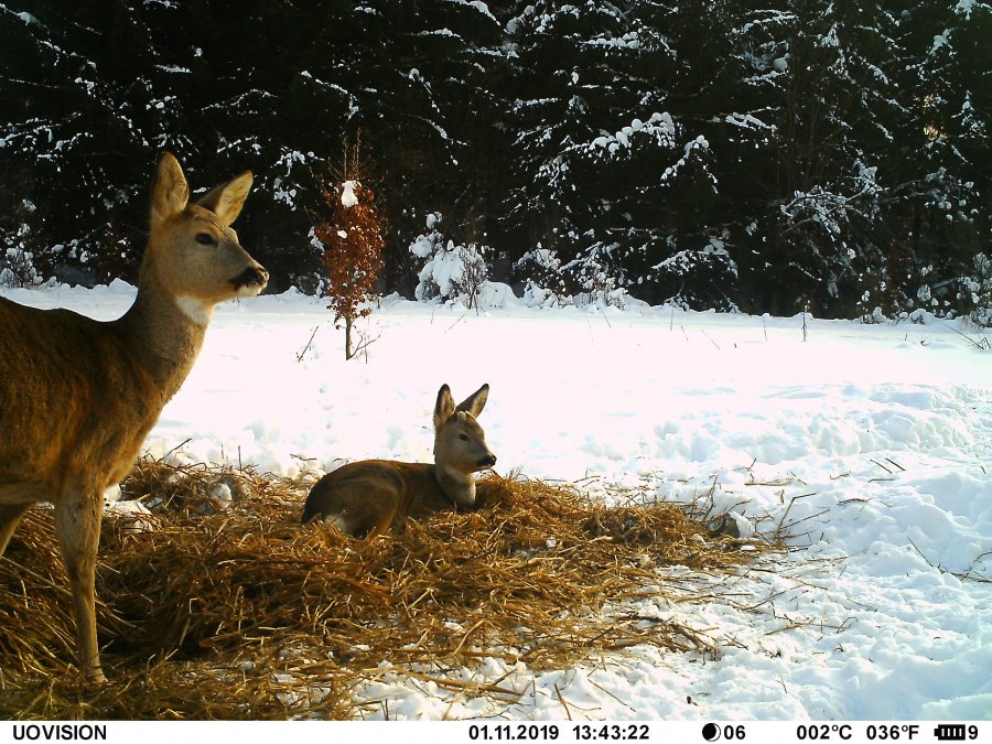 Parádní fotky, Pali!!!!! Srnčí zvěř ráda zalehává poblíž krmelců nebo přímo u nich. (Pokud má založeno dobré objemové, či jadrné krmivo.)