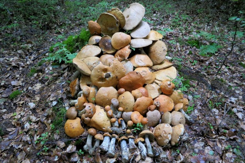 Výsledek necelých dvaceti minut sběru na ploše asi sto krát sto metrů.Rostou v Krušných horách. Výřad tři plné koše hřibů,modráků a křemenáčů. Prostě chodili jsme je pouze sbírat,žádné hledání :-))