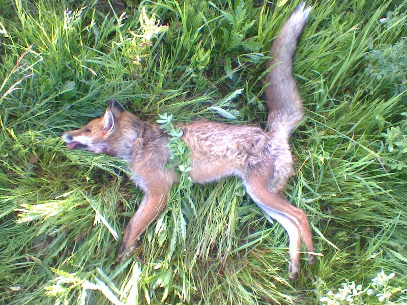 jeden příjemný podvečer.Lišák uloven na 120 m kulovnicí CZ 550 v ráži 7x64