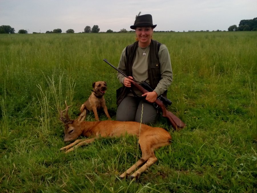 Po několika neůspěšných večerních vycházkách,se Martině povedlo ulovit tohoto dobrého srnce chvíli po poledni.Trošku jsem jí lhal ohledně vzdálenosti,tak střílela na 210 kroků ráží 223 rem.