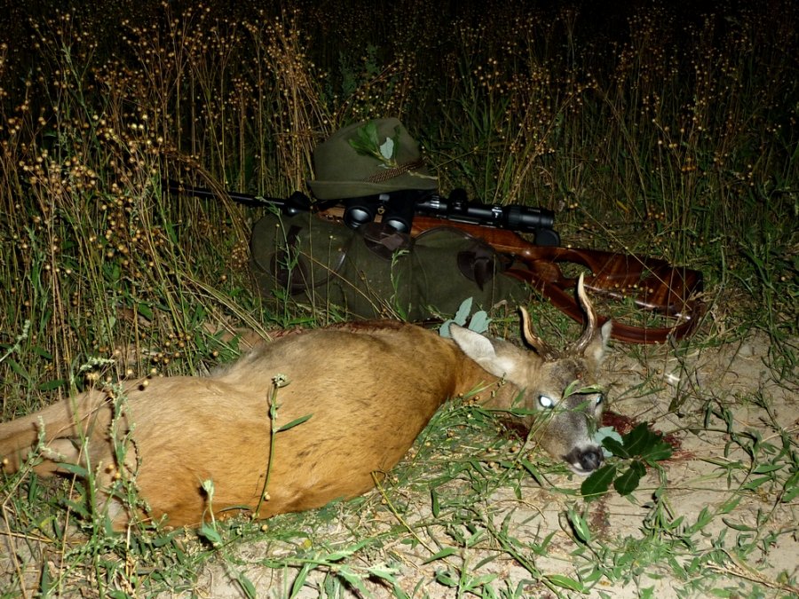 Srpen začal dobře a tak když jsou všichni na holubech, vyrazil jsem za svým starým známým. Zdržuje se furt na stejném místě, ale za světla teď vytahuje málokdy. Na lněném poli ho prohání starší šesterák a mladší vysoký vidlák. Přivezl jsem si metr a půl vysoký přenosný posídek, z kterého jsem ho zahlédl asi na tři sta metrů uprostřed pole, kde následně zalehl. Vzal jsem tedy posed na záda a šel mu opatrně naproti. Na zarostlé rýze mi pak po třetí sérii s Turvabkou vytáhl deset metrů za zády a postupoval šikmo ode mne. Poté prudce otočil krk a světla upřel na nově vyrostlý obelisk. Se zatajeným dechem jsem navzdory svým zásadám posunul kříž na kořen krku, jediné odkryté místo a podvečer prořízlo štěknutí remingtonu. 3,6 gramové Sako tak ukončilo poslední pouť tohoto dvouletého srnce a uložilo ho do lněných paliček. Mě nezbývá než poděkovat mysliveckým patronům za dnešní přízeň a pokorně pronést Lovu zdar.
