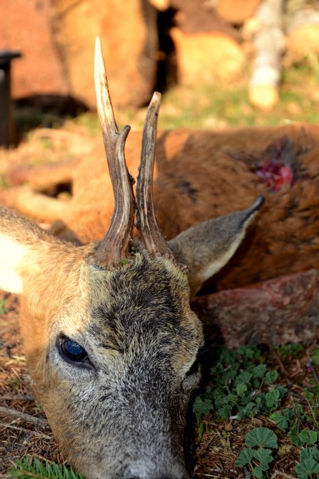 Už loni jsem měl povolenku u kamarádů v sousedním revíru, jen nebylo tolik času, kolik bych si přál a nároky hospodáře na kvalitu mnou uloveného srnce byly tak vysoké, že jsem žádného neulovil :-) O to pilněji jsem se rozhodl chodit letos a obětoval nemálo rán své letošní dovolené. Můžu sice chodit sám, ale ve dvou se to lépe táhne a tak jsme s kamarádem Jirkou poseděli v několika lokalitách, leč bez úspěchu. Dnes ráno jsme znovu vyrazili, já ke sloupu el. vedení na srnce, on k rákosu na lišky. S rozedněním přišla liška i mě, ale chytře po horizontu, kam jsem se bál vystřelit, neboť za horizontem je frekventovaná silnice. Chvíli na to padne rána od kolegy, za chvíli druhá a pak třetí. Podle známé poučky si říkám, že dneska asi maso nebude, ale už vrní telefon a zpráva říká, že se na třetí dobrou zadařilo a vyspělé lišče leží. První minutá, druhá zásah a třetí dostřelná. Na šestou přijíždí traktor s disky a tak rychle zjišťujeme, že tady jsme dneska skončili. Přejíždíme proto do jiné lokality, poblíž kamarádova domu. A ejhle, ve strništi v poli odpočívá srnec i s družkou. Dlouho ho obeznáváme, ale je to tak, zpáteční nepravidelný šesterák s mírně vyhnutými lodyhami, dobrý, odstřelový. Teď už jen počkat, až se zvedne a dát dobrou ránu. I tohle naše přání se po chvíli plní a ...........ranní ticho přeruší výstřel z mé osmičky a srnec v ohni padá do koleje ve strništi tak, že není ani vidět. Konečně může být můj doprovod spokojený, o jeden kus škodné v revíru méně, host také ulovil, hospodář může být s jeho hlášením spokojen. 90 m, 8x57 JS, Geco Plus. Lovu zdar!