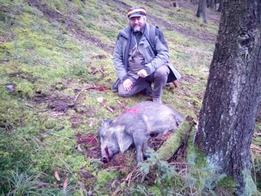 váha: 39 kgKamarád mě pozval na nadháňku a podařilo se mi ulovit sele. Fotka je nearenžovaná, tak jak sele zůstalo v ohni a já k němu došel po ukončení leče. Jarda mě hned vyfotil. Díky!