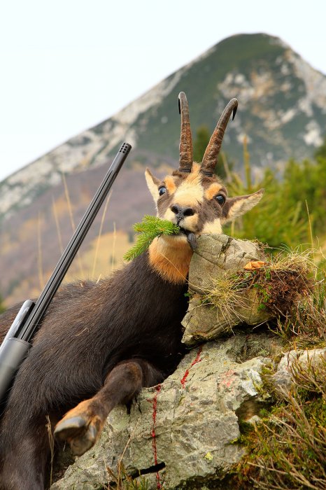 Totoho kamzíka jsem ulovil na 592m. Dlouho jsme kamzíka pozorovali jak si v době říje rovnal svoji skupinu. Kamzík se mnohokrát postavil tak že nebylo možné na tuto dálku střílet. Dlouhé čekání se vydařilo, až se zastavil na vzdálenosti 592m v místě kde bylo možné střílet. Možnost jsem využil jediným výstřelem po kterém zůstal kamzík v ohni. Pro zajímavost dávám do kategorie OSTATNÍ fotografii z místa odkud a kam bylo stříleno. Puška se systémem Kelbly Custom, použita ráže 6.5-284.