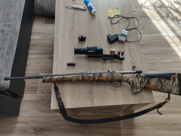 Prodám velice přesnou zbraň ČZ 557 predátor.ráže 30-06spring.Ze zbraně je vystřeleno do 50ran.Zbraň je opatřena rychloupínací montáží na tlumič, kompenzátor přidám také,dále montáž na kolimátor docter.Cena 17.000kč. Termovize saim 35,je na rychloupínací montáži weaver lišta na 557 od firmy Mak.Součástí prodeje je i nabiječka i dobíjecí baterie cena 37.000.