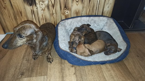 Typ: NorníciChovatelská stanice z Fotrova dvora nabízí štěňátka trpasličích jezevčíků z vrhu "B" narozená 11. října, po lovecky vedených rodičích, barva červená žíhaná (fena trp. pes král.). Volné jsou dvě žíhané fenky a jeden pejsek červený s příměsí. Odběr první polovina prosince.