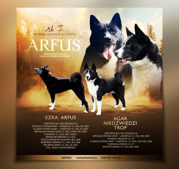 Chovem Karelských medvědích psů se zabýváme téměř 30 let. Uspěli jsme na mnohých mezinárodních výstavách i v zahraničí např. Finsko, Helsinky - 2. místo Světová výstava psů.