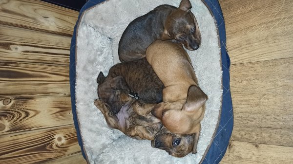 Typ: NorníciChovatelská stanice z Fotrova dvora nabízí štěňátka trpasličích jezevčíků z vrhu "B" po lovecky vedených rodičích, barva červená žíhaná (fena trp. pes král.). Volné jsou dvě žíhané fenky a jeden pejsek červený s příměsí.