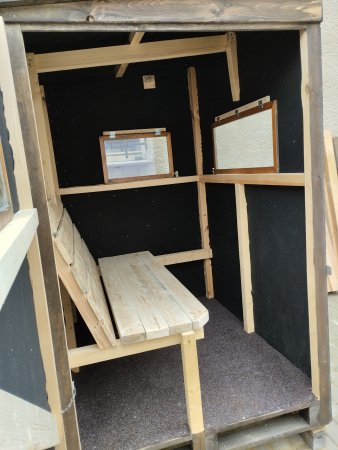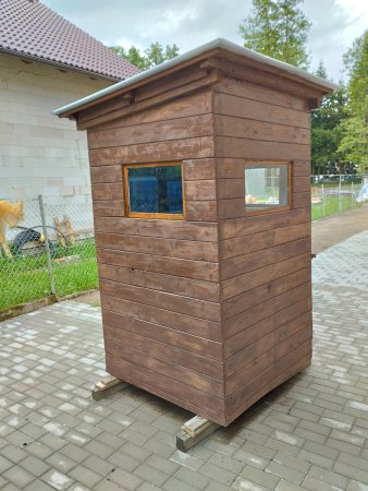 Prodám kazatelnu bez podstavy je vyrobena z pevné kostry pobytá palubkama zevnitř zateplená filcem lavice s opěradlem, 3x otevírací okno,na střeše pvc střešní fólie fatrafol.Nátěr olejová vodeodolná impregnace.