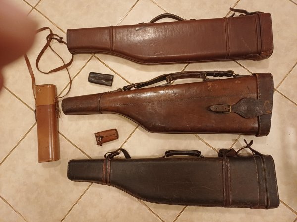 Typ: OstatníProdám 3 kožená kufrová pouzdra na brokovnici, kožené pouzdro na puškohled s řemínkem přes rameno a 2 kožené krytky ústí.