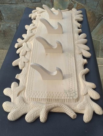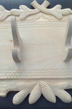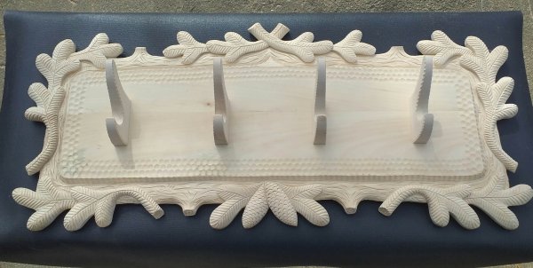 Krásný stylový myslivecký věšák vhodný do myslivecké jizby, chalupy či reprezentativního interiéru. Jedná se o precizní ruční řezbářskou práci s důrazem na detail, která podtrhuje tradiční myslivecký charakter.Věšák je vyroben s kvalitního lipového dřeva. barva věšáku se přizpúsobí požadavku zájemce.