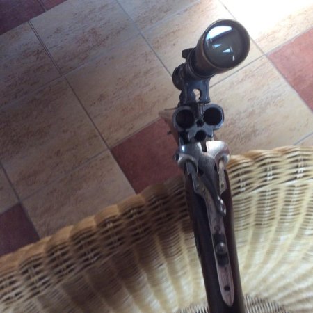 lovecká zbraň - puška čtyřče; značka výrobce - BURGSMŮLLER; ráže: 20/70, 20/70, 22 Long Rifle, 5,6x52R. Rok výroby 1939 Rakousko.