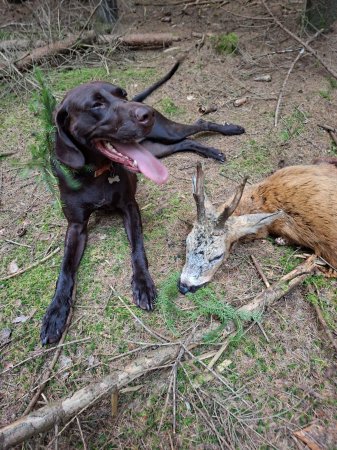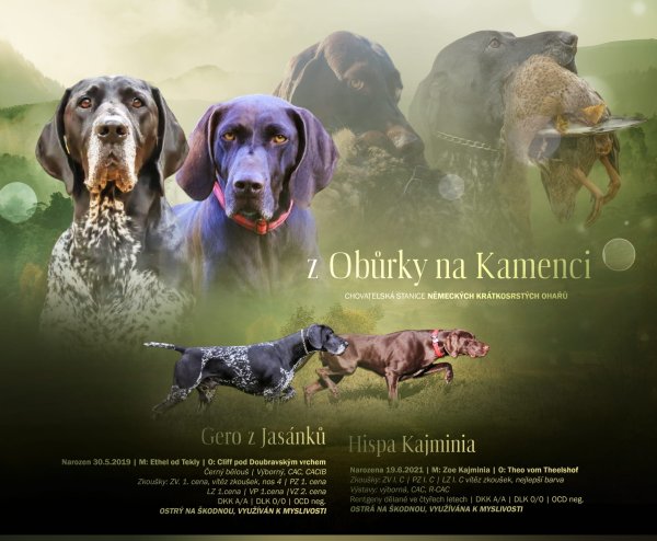 Oba rodiče jsou myslivecky vedeni, mají zkoušky z výkonu, vynikající exteriér a výstavní tituly. Viz letáček