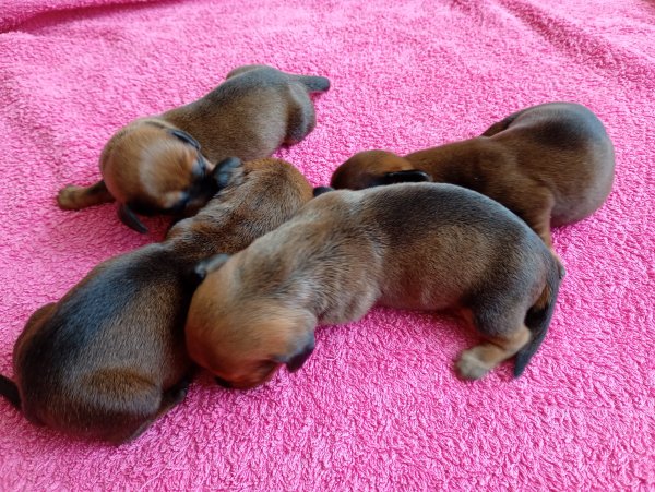 Typ: NorníciCh. st. LongTeror nabízím štěňata jezevčík hladkosrstý standart po rodičích používaných v myslivosti, barvy červená s příměsí černé. Matka Eowyn z Heneberk otec Kyr Star Moravia, více informací po telefonu. K odběru budou koncem května čipovaná, očkovaná s PP. Více informací po telefonu 733 368304, cena dohodou.
