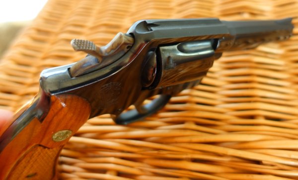 Prodám revolver Smith & Wesson 10-6 v ráži 38 Spec. Hlaveň 4 palce, silnostěnné provedení hlavně, válec na 6 ran. Krásný stav A1, nenošený, velmi málo střílený. Kompletně bez vůlí, bezchybné časování, originální střenky. Bez známek používání, celkově netknutý, přesný. Ideální na dostřelování v lese. Původní poctivá produkce z 80 let. Cena 10 999 Kč. V případě zájmu možno přivézt po trase Vsetín, Zlín, Brno, Olomouc, Ostrava, Vysočina, Praha, Plzeň, Karlovy Vary. Další informace po telefonu, inzerát platí do smazání.