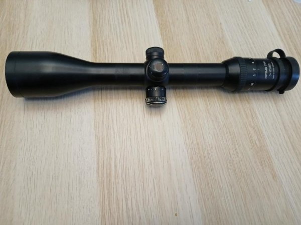 Puškohled byl používaný šetrně, převážně na kulovnici střední ráže, nikdy neutrpěl pád ani silný náraz. Čočky byly vždy chráněné krytkami, závity a povrchová úprava jsou bez výrazného opotřebení, pouze drobné kosmetické stopy odpovídající běžnému používání. Funkčně je ve stavu 100 %.