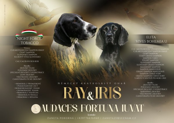 Typ: OhaříPřijímáme rezervace na štěňátka Německých krátkosrstých ohařů s průkazem původu. Rodiče štěňat jsou: Night Force Tobacco - ZV,PZ,LZ,VZ, mezinárodní šampion CIB, matka Elita Vives Bohemia - ZV, PZ,VZ, mezinarodni šampionka CIB & CIE. Štěňata se narodí v první polovině května. Vice informací ráda poskytnu na tel čísle 776636060