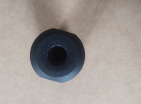 Prodám nepoužitý kompenzátor zpětného rázu, úsťová brzda. Délka 60 mm, průměr 24 mm, závit M 15 x 1 mm.