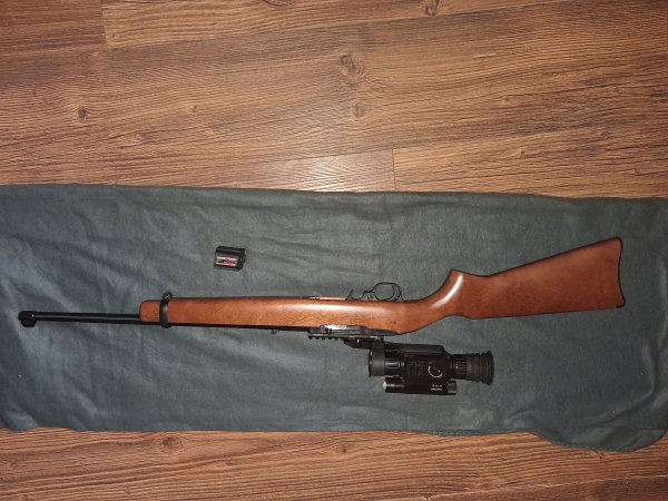 Dobrý den, prodám samonabíjecí malorážku Ruger 10/22 Carbine deseti raný rotační zásobník,koupená nová 2022, vystřeleno +/-500 ran.Použvaná na lov nutrií a cvičnou střelbu na střelnici,spolehlivá.Cena 8 000,-Kč .Možno zakoupit i s NV Pard 008 cena za komplet 9 500,- kč. Při rychlém a férové jednání možná sleva.