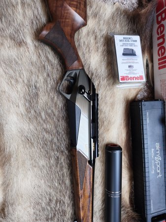 Prodám 3 roky starou kulovnici Benelli Lupo Wood v ráži 30-06Sprg + 1 rok starý tlumič AimSport Triton no.4, závit M14(pro ráži 30-06sprg). Kulovnice je ve stavu 1A s nástřelem do 200ran. Tlumič též ve stavu 1A má nástřel okolo 80ran. Zbraň i tlumič ve velmi dobrém stavu, pravidelně čištěné a opečovávané. Ke kulovnici je originální krabice se vším příslušenstvím + 1 originální ještě nerozbalený náhradní zásobník. Na hlavni závit z výroby M14 a krytka, dvouřadý zásobník na 5 ran jednodílná Picatinny/weaver šína. Velice přesná, hezká a reprezentativní zbraň. Nástřelka na fotce je s továrním střelivem SB Exergy Blue 165gr - 5 ran/100m. Prodej jako celek. Předání možné u Písku. Kdybych nezvedal telefon, pište SMS ozvu se zpět.