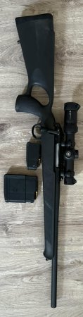 Prodám Sabbati all round v ráži 308win. Ke zbrani jsou 2 zásobníky jeden 3 ranný a druhý 7 ranný. Kulovnice je osazena optikou Vortex Strike Eagle 1-8x24. Ze zbraně vystřeleno cca 30 ran. Kulovnice kupovaná v 09/2025 Puškohled koupen v 11/2025